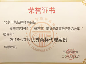 集佳代理“好聲音”商標(biāo)無(wú)效宣告行政案入選“優(yōu)秀商標(biāo)代理案例”
