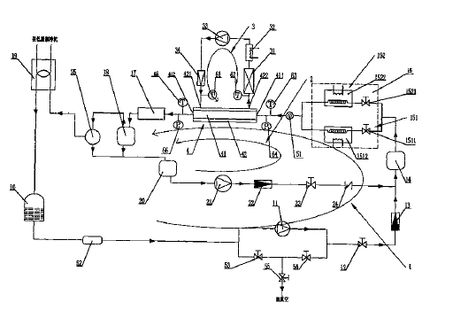 本發(fā)明涉及一種管內(nèi)制冷劑含油蒸發(fā)/冷凝傳熱測(cè)試一體裝置及其測(cè)試方法,裝置的特征是包括通過管道順序連接的冷凝器、回收罐、動(dòng)力泵、調(diào)節(jié)閥、制冷劑質(zhì)量流量計(jì)、均勻調(diào)和槽、蒸發(fā)預(yù)熱/冷凝預(yù)熱并聯(lián)選擇通路、蒸發(fā)/冷凝測(cè)試段、加熱器、高效油分離器、冷凝器的制冷劑回路;通過管道順序連接的高效油分離器、貯油器、高壓油泵、潤(rùn)滑油質(zhì)量流量計(jì)、控制閥、均勻調(diào)和槽、蒸發(fā)預(yù)熱/冷凝預(yù)熱并聯(lián)選擇通路、制冷劑蒸發(fā)/冷凝測(cè)試段、加熱器、高效油分離器的潤(rùn)滑油注油回路;以及通過管道順序連接的換熱器、水加熱器、水泵、水質(zhì)量流量計(jì)的蒸發(fā)/冷凝測(cè)試段換熱回路。可進(jìn)行不同制冷劑管內(nèi)蒸發(fā)冷凝傳熱測(cè)試和制冷劑含油率對(duì)換熱管蒸發(fā)冷凝傳熱特性影響測(cè)試,方便、可靠。 |