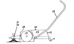 | 40 | 實(shí)用新型 | 手推式掃地車 | 一種手推式掃地車,它屬于一種掃地工具,尤其是一種人力手推、機(jī)械運(yùn)動(dòng)對(duì)地面進(jìn)行清掃的手推式掃地車。本實(shí)用新型旨在解決現(xiàn)有清掃工具各自存在的適用范圍窄、成本昂貴、耗費(fèi)人力、清掃效果差的缺陷,其技術(shù)方案是:該掃地車包括機(jī)殼(28)、扶手(29)、垃圾存儲(chǔ)箱(23)、主動(dòng)滾輪(13)、滾刷(14、15),滾刷(14、15)位于機(jī)殼(28)內(nèi),滾刷軸與位于其兩側(cè)的主動(dòng)滾輪(13) 軸齒連接,主動(dòng)滾輪(13)的轉(zhuǎn)動(dòng)帶動(dòng)滾刷(14、15)運(yùn)轉(zhuǎn),垃圾存儲(chǔ)箱(23)位于滾刷(15)后方,為增強(qiáng)清掃效果在機(jī)殼前方還設(shè)置有一對(duì)向內(nèi)旋轉(zhuǎn)的盤刷。 | ![]() |