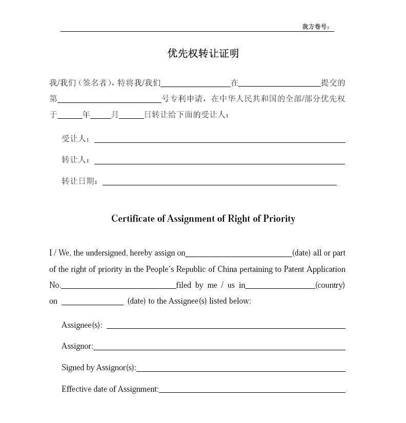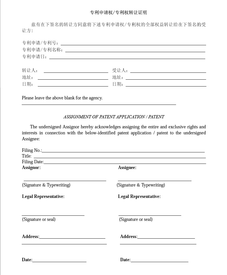 Certificatate of Assignment of Right of Priorty Assignment of Right of Application