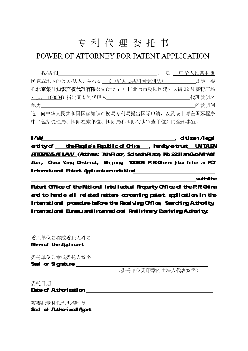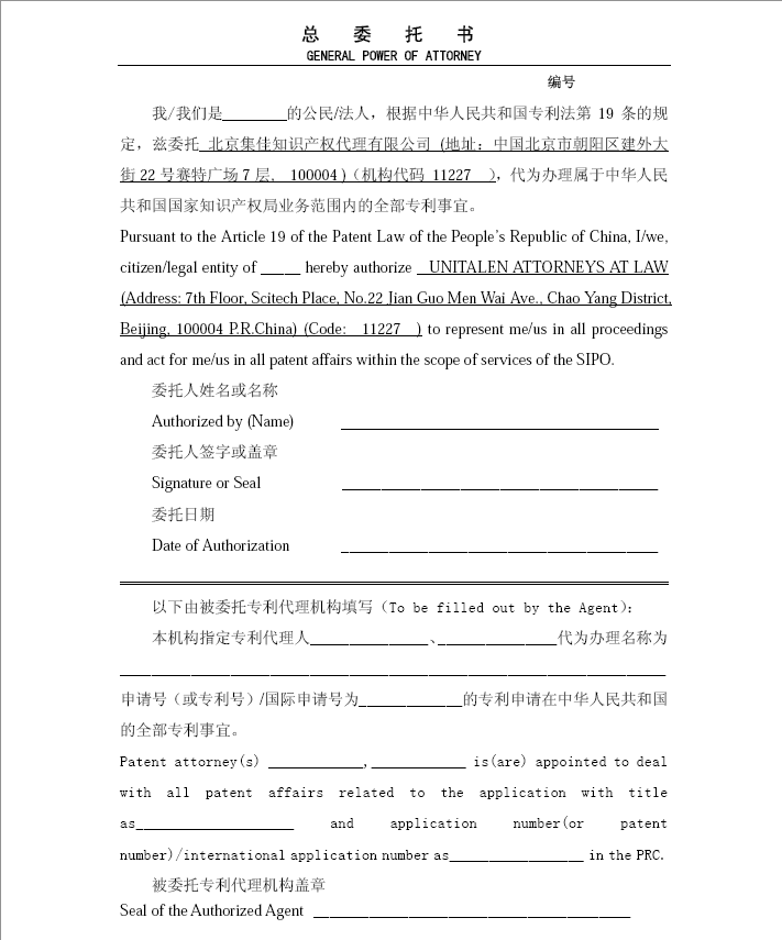 Patent General Power of Attorney Power of Attorney Power of Attorney-International Phase Application
