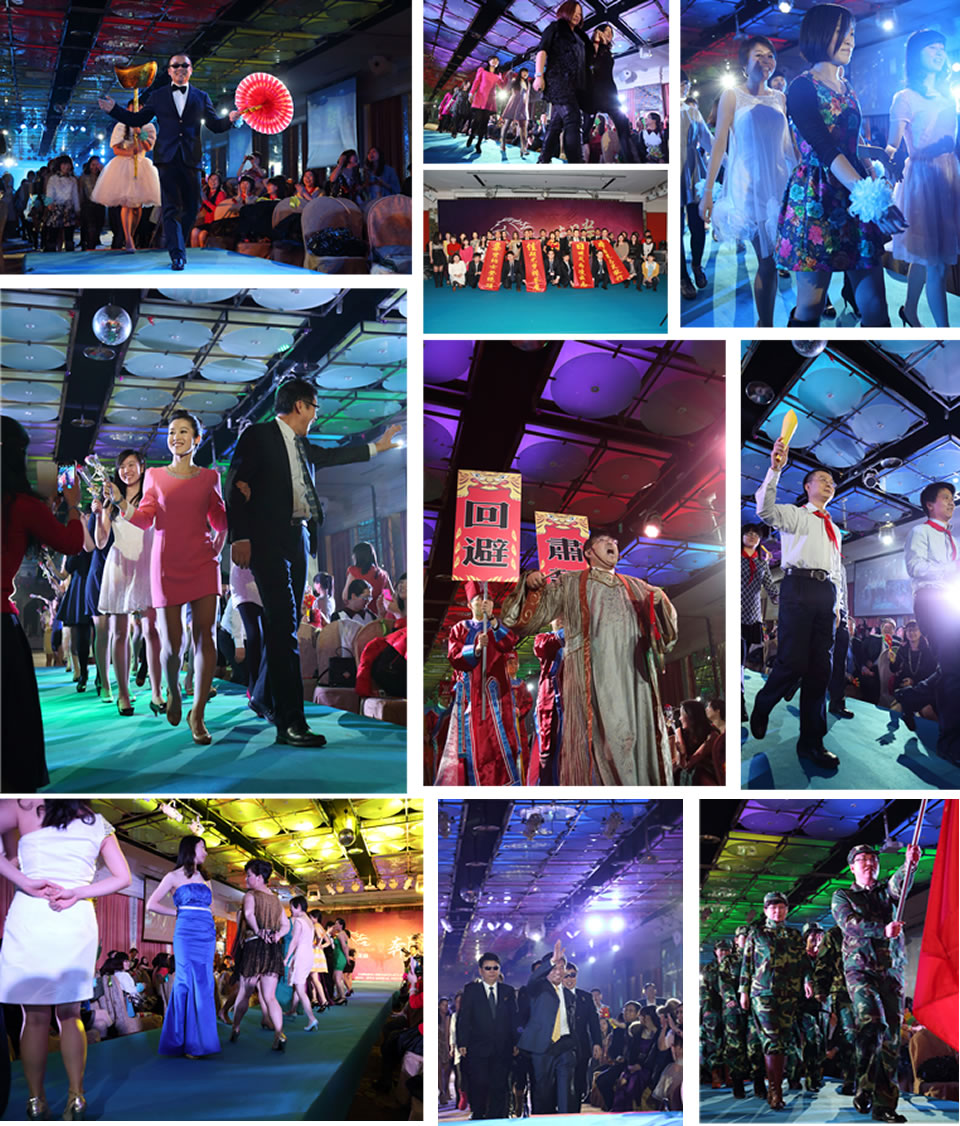 隨后踏上星光大道的二十余個(gè)部門,逐一閃亮登場,個(gè)個(gè)創(chuàng)意無限。通過他們的精心裝扮和表演,能感受到滿滿的祝福撲面而來——小清新和男女搭配的國際電學(xué)部、舉著元寶扮成福仔旺仔高喊“馬上有錢”的財(cái)務(wù)部、在高大帥帶領(lǐng)下由小伙伴和女漢子們組成的流程部、帶著化學(xué)元素符號(hào)入場的化學(xué)部、乘坐集佳年會(huì)專列高舉“集賢納士登絕頂,佳期尤夢獵蒼鷹,日逐風(fēng)雨凌云志,本自策馬笑傲行”壯語的日本部、還有包公帶著眾衙役趕來的訴訟部……在璀璨絢麗的燈光下,他們神采飛揚(yáng),亦或穿越經(jīng)典、賣萌扮嫩,亦或演繹紅色風(fēng)暴,性感來襲,將最具個(gè)性的風(fēng)采一覽無余地展現(xiàn)在集佳星光大道上。