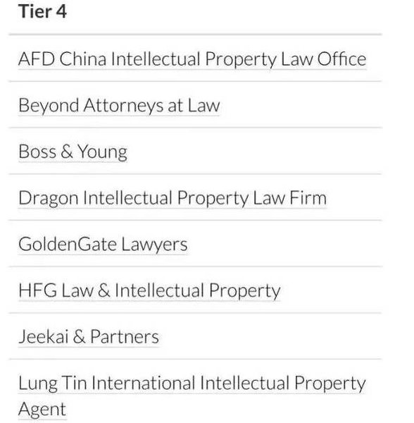 近日,國際著名知識產(chǎn)權(quán)媒體《知識產(chǎn)權(quán)管理》雜志(Managing Intellectual Property)公布“2016年知識產(chǎn)權(quán)之星商標(biāo)業(yè)務(wù)排行榜”(IP Stars 2016 Trade Mark Rankings)。集佳同時榮登商標(biāo)爭議業(yè)務(wù)及商標(biāo)訴訟業(yè)務(wù)中國區(qū)第一梯隊(Tier 1)。
