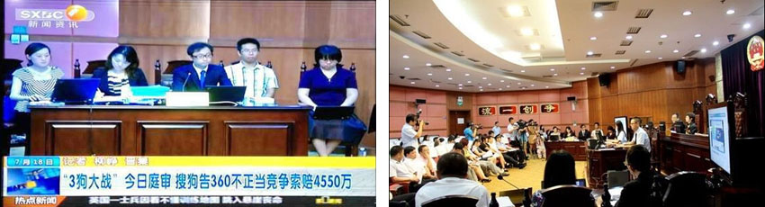 由北京市集佳律師事務(wù)所張亞洲律師、周丹丹律師代理的北京搜狗信息服務(wù)有限公司、北京搜狗科技發(fā)展有限公司與被告北京奇虎科技有限公司、奇虎三六零軟件(北京)有限公司不正當(dāng)競爭糾紛一案,于7月18日上午在陜西省西安市中級人民法院公開開庭審理。搜狗公司向兩被告索賠4500萬元的經(jīng)濟(jì)損失及50萬元的案件支出費(fèi)用,庭審后,雙方表示愿意調(diào)解。
