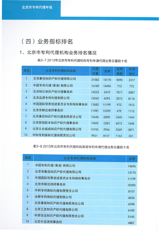 北京市知識(shí)產(chǎn)權(quán)局每年發(fā)布專利代理年報(bào),從全市專利代理機(jī)構(gòu)整體情況、業(yè)務(wù)經(jīng)營(yíng)情況、專利代理人培訓(xùn)、資格考試情況以及行業(yè)大事記等方面展示北京專利代理行業(yè)的整體面貌和發(fā)展動(dòng)態(tài)。年報(bào)數(shù)據(jù)均來(lái)源于國(guó)家知識(shí)產(chǎn)權(quán)局公開(kāi)的機(jī)構(gòu)情況、國(guó)家知識(shí)產(chǎn)權(quán)局條約法規(guī)司編制的《專利代理簡(jiǎn)訊》、專利代理機(jī)構(gòu)報(bào)送的年檢數(shù)據(jù)以及北京市專利申請(qǐng)及授權(quán)數(shù)據(jù)。