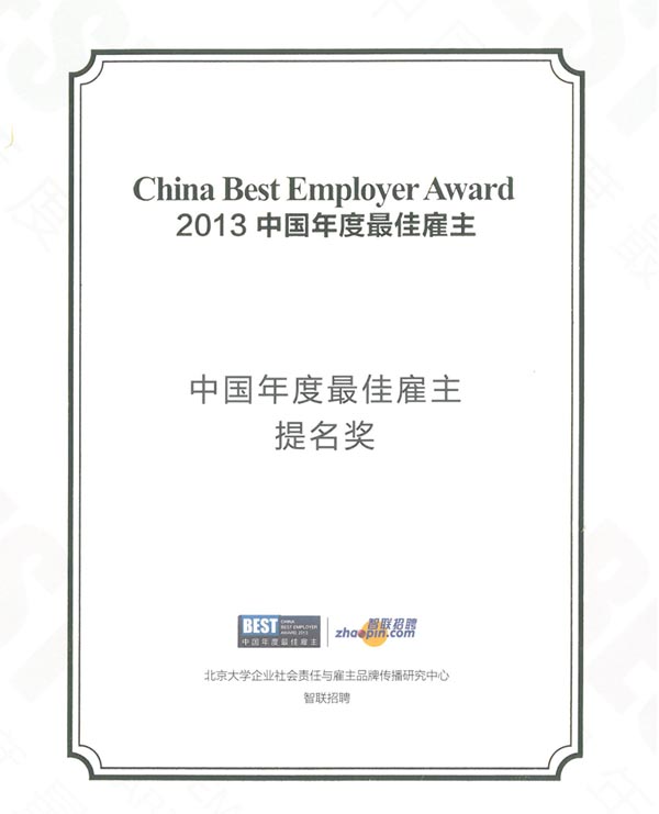 近日,“中國(guó)年度最佳雇主”(China Best Employer Award)榜單在三亞揭曉。集佳在本次評(píng)比中獲得“2013中國(guó)年度最佳雇主提名獎(jiǎng)”。