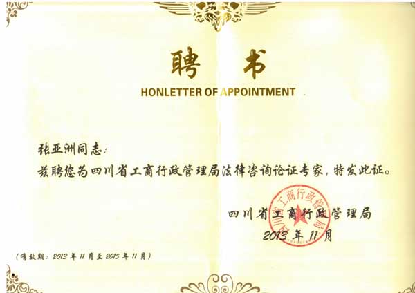 近日,經(jīng)四川省工商局綜合評(píng)議,北京市集佳律師律師事務(wù)所張亞洲律師被聘為四川省工商局行政決策法律咨詢(xún)論證專(zhuān)家組成員。此次一同受聘的,還包括四川省人大、省政府法制辦、省法院、省公安廳等共11家單位的有關(guān)專(zhuān)家學(xué)者,集佳律師事務(wù)所成為本次受聘唯一的律師事務(wù)所。