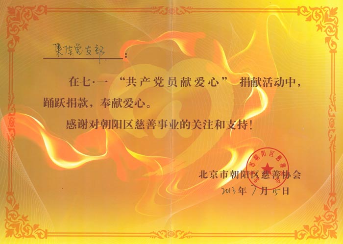 在慶祝中國共產(chǎn)黨成立92周年之際,響應(yīng)朝陽區(qū)委政法委《關(guān)于做好中國共產(chǎn)黨成立92周年系列活動(dòng)的通知》號(hào)召,集佳律師事務(wù)所開展了“共產(chǎn)黨員獻(xiàn)愛心”捐款活動(dòng)。