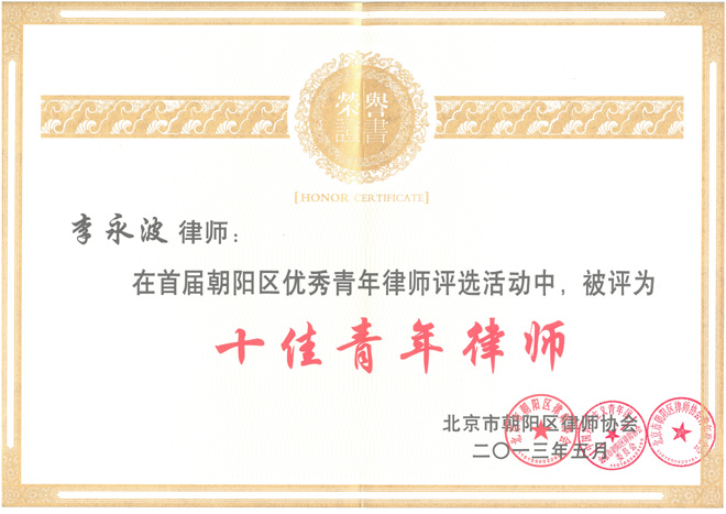 近日,首屆朝陽(yáng)區(qū)優(yōu)秀青年律師表彰大會(huì)在北京國(guó)際會(huì)議中心成功舉辦。大會(huì)為首屆朝陽(yáng)區(qū)100名優(yōu)秀青年律師頒發(fā)了獎(jiǎng)牌,北京市集佳律師事務(wù)所李永波律師被評(píng)為“十佳青年律師”,張亞洲律師、孔繁文律師獲評(píng)“先鋒青年律師”。
