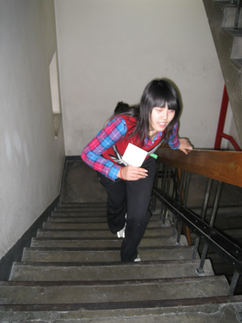 本次爬樓比賽采取兩人一組的形式進(jìn)行,隨著裁判員一聲令下,集佳健兒便奮力猛沖,開始了體能大比拼。看著他們輕盈的身影,后面等待的選手便不由自主地充當(dāng)起了啦啦隊(duì),歡呼雀躍,為他們鼓掌加油。比賽中,選手們奮力拼搏,也互相幫助,雖然爬樓不算大運(yùn)動(dòng)量的體育活動(dòng),但全程11層的樓梯爬起來也并非易事,即使是這樣,每一名選手都堅(jiān)持到了終點(diǎn)。由于本次比賽的初衷就是建議大家環(huán)保節(jié)能,“少乘電梯,多爬樓梯”,因此賽前組織者就在樓梯間張貼了環(huán)保小貼士。選手們在爬樓過程中也不忘學(xué)習(xí)樓道中提示的環(huán)保小常識(shí),在最后的環(huán)保題目小測驗(yàn)中,各隊(duì)表現(xiàn)都十分出色,幾乎全部答對。