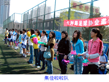 比賽場上,集佳隊員身著球隊隊服整裝出戰(zhàn),個個精神抖擻,士氣高漲;專利局隊也不示弱,賽場上的進攻、配合、組織都顯示出了極高的專業(yè)素質(zhì)。帶球、過人、傳球、射門……精彩又緊張的環(huán)節(jié)此起彼伏,雙方隊員都發(fā)揮出了很好的比賽狀態(tài)。比賽場下,一面是兩隊教練及替補球員積極商討戰(zhàn)術,變換打法;一面是熱情的啦啦隊員籌備了種類繁多的道具,不停吶喊、助威。