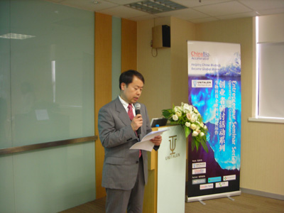 經(jīng)過(guò)十多年的發(fā)展,集佳已經(jīng)和國(guó)內(nèi)多家生物科技企業(yè)建立知識(shí)產(chǎn)權(quán)方面的合作,正因?yàn)槿绱?,ChinaBio Accelerator選擇了把集佳作為首次活動(dòng)的舉辦地點(diǎn),同時(shí)邀請(qǐng)了在生物技術(shù)領(lǐng)域有著豐富經(jīng)驗(yàn)的知識(shí)產(chǎn)權(quán)專家集佳合伙人劉超博士出席并做演講。出席本次活動(dòng)的嘉賓還有ChinaBio總裁和創(chuàng)建人Greg B. Scott 先生、保諾科技(北京)有限公司CEO Nigel R.A. Beeley博士。他們分別就中國(guó)企業(yè)如何吸引投資者、如何通過(guò)外包降低藥物研發(fā)成本的主題進(jìn)行了精彩的演講。
