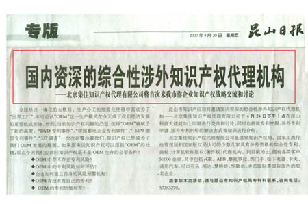 針對此次集佳首次赴昆山市作知識產(chǎn)權(quán)講座,當(dāng)?shù)孛襟w如《昆山日報》等進行了詳細(xì)報道。