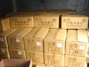 接到委托后,集佳立即組織調查維權部專案律師,前往案發(fā)地區(qū),再一次核實了侵權事實,并準備了完整的證據(jù)材料,向山東省臨沂市工商行政管理局投訴。該局分析案情后,決定與山東省臨沂市公安局,開展一場聯(lián)合執(zhí)法行動。次日,由多名工商局和公安局組成的聯(lián)合執(zhí)法大隊,在投訴人的帶領下,徑直前往侵權企業(yè),經(jīng)過一番仔細搜查,發(fā)現(xiàn) “一得閣”墨汁115箱,標識近600個,包裝盒近400個,商品說明書100份,經(jīng)過一得閣公司技術負責人現(xiàn)場鑒定,以上查扣物品均為假冒侵權貨品。鑒于此,工商執(zhí)法人員,立即對以上侵權貨品予以查扣。據(jù)代理律師透露,該案的涉案較高,工商行政管理部門在對侵權人依法做出行政處罰的同時,依職權可將案件移交公安機關以追究侵權人的刑事責任。目前,該案在進一步的審查處理過程中。(以下為現(xiàn)場拍攝下來的侵權產(chǎn)品)