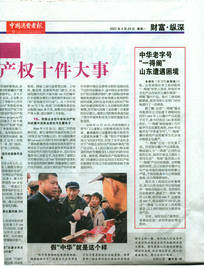 但是,就是這樣一個濃縮了中華文化產(chǎn)品上百年歷史,代表著書畫用品最高榮譽的中華老字號,卻在近些年日漸遇到維護自有知識產(chǎn)權領域的難題,特別是受到嚴重的假冒侵權產(chǎn)品的困擾。一時間,假冒產(chǎn)品充斥市場,魚目混雜。據(jù)一得閣公司介紹,“目前部分墨汁產(chǎn)品采購商,錯誤地以為一得閣公司得總部在山東,甚至在展會上竟有人詢問北京一得閣是否是山東一得閣產(chǎn)品的經(jīng)銷商?!比绱藢擂蔚木置妫阋苑从衬壳澳幕a(chǎn)品市場的商標侵權現(xiàn)象之嚴重,個別造假者不但公然制假售假,還企圖混淆視聽,完全是一種對法律的漠視行為。