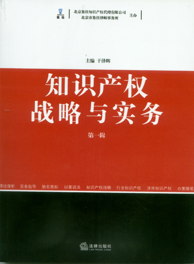 集佳一直倡導(dǎo)在為客戶提供優(yōu)質(zhì)知識產(chǎn)權(quán)服務(wù)的同時(shí),注重加強(qiáng)在知識產(chǎn)權(quán)實(shí)務(wù)和理論方面的研究。在長達(dá)十余年為客戶提供卓越服務(wù)的過程中,集佳積累了非常豐富的實(shí)踐經(jīng)驗(yàn),并在此基礎(chǔ)上總結(jié)形成了豐富的研究成果。近日,集佳將這些成果進(jìn)行了系統(tǒng)整理,并結(jié)集成書——《知識產(chǎn)權(quán)戰(zhàn)略與實(shí)務(wù)》(第一輯)。該書由集佳合伙人會議主席于澤輝主編,已于近日由法律出版社面向全國正式出版發(fā)行。