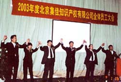 2003年,對于集佳來說,是向國際化企業(yè)邁進(jìn)的關(guān)鍵一年,集佳人上下同心、拼搏奮進(jìn),戰(zhàn)勝了“非典”對我們的巨大挑戰(zhàn)和代理機(jī)構(gòu)放開的嚴(yán)峻考驗,再次成為商標(biāo)代理量的全國第一。集佳合伙人會議主席于澤輝在2003年度工作報告中,詳細(xì)闡述了集佳在過去的一年里取得的成績和進(jìn)步,按部門總結(jié)了2003年工作的優(yōu)勢和不足,并詳細(xì)分析了行業(yè)前景、國際環(huán)境和集佳的優(yōu)勢與發(fā)展?jié)摿?,使集佳人對?年內(nèi)把集佳發(fā)展成為世界前100名知識產(chǎn)權(quán)代理機(jī)構(gòu)的目標(biāo)充滿信心。