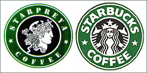 2005年3月,星巴克控訴Elpreya的行為直接侵犯了其已注冊的標(biāo)識,但被受理法院駁回。星巴克的標(biāo)識中采用了美人魚圖案,并已有一定的認(rèn)知度, Starpreya則使用了一個女神的形象。
