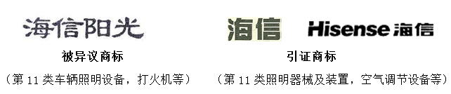 申請理由和法律依據(jù):第11類被異議商標(biāo)與申請人在先注冊的第11類引證商標(biāo)“海信”構(gòu)成類似商品上的近似商標(biāo),并構(gòu)成對申請人在第9類注冊“海信”馳名商標(biāo)的復(fù)制摹仿,易誤導(dǎo)公眾致使申請人的利益受到損害。請求依據(jù)《商標(biāo)法》第十三條三款、第三十條等規(guī)定,對被異議商標(biāo)不予核準(zhǔn)注冊。