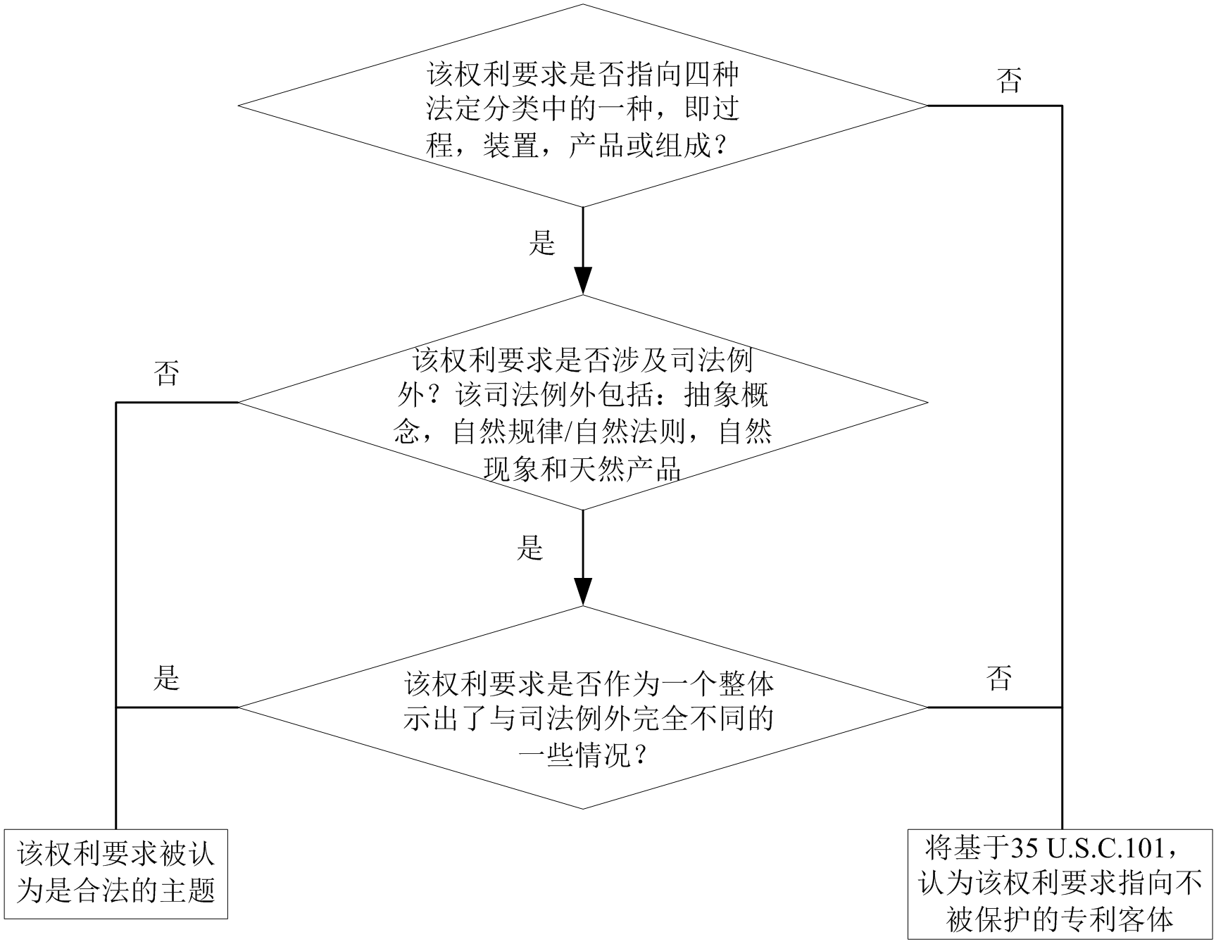如果是,或者不清楚該權(quán)利要求是否涉及司法例外,則過(guò)程進(jìn)入問(wèn)題3。