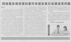 集佳律師文章《網(wǎng)絡(luò)服務(wù)提供商的著作權(quán)侵權(quán)責任法律適用問題》在《中國貿(mào)易報》發(fā)表