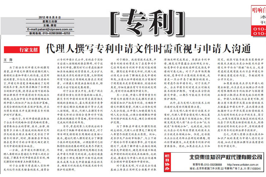 法律聲明 Unitalen Mail Box ?2016 Unitalen Attorneys at Law 版權所有 集佳知識產權代理有限公司 京ICP備11033076號 京公網(wǎng)安備11010502020670