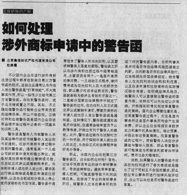 《國(guó)際商報(bào)》:如何處理涉外商標(biāo)申請(qǐng)中的警告函