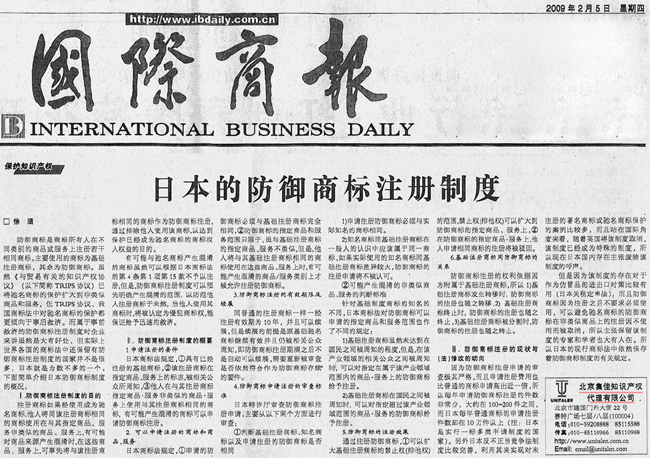 《國際商報》:日本的防御商標(biāo)注冊制度