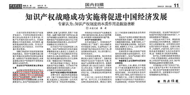 《中國貿易報》:知識產權戰(zhàn)略成功實施將促進中國經濟發(fā)展