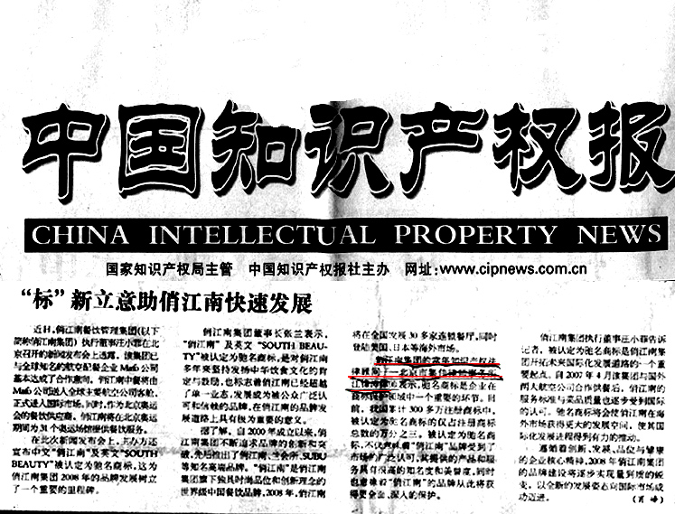 《中國知識產(chǎn)權(quán)報》:"標"新立意助俏江南快速發(fā)展