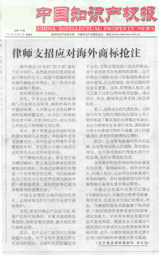 《中國(guó)知識(shí)產(chǎn)權(quán)報(bào)》:律師支招應(yīng)對(duì)海外商標(biāo)搶注