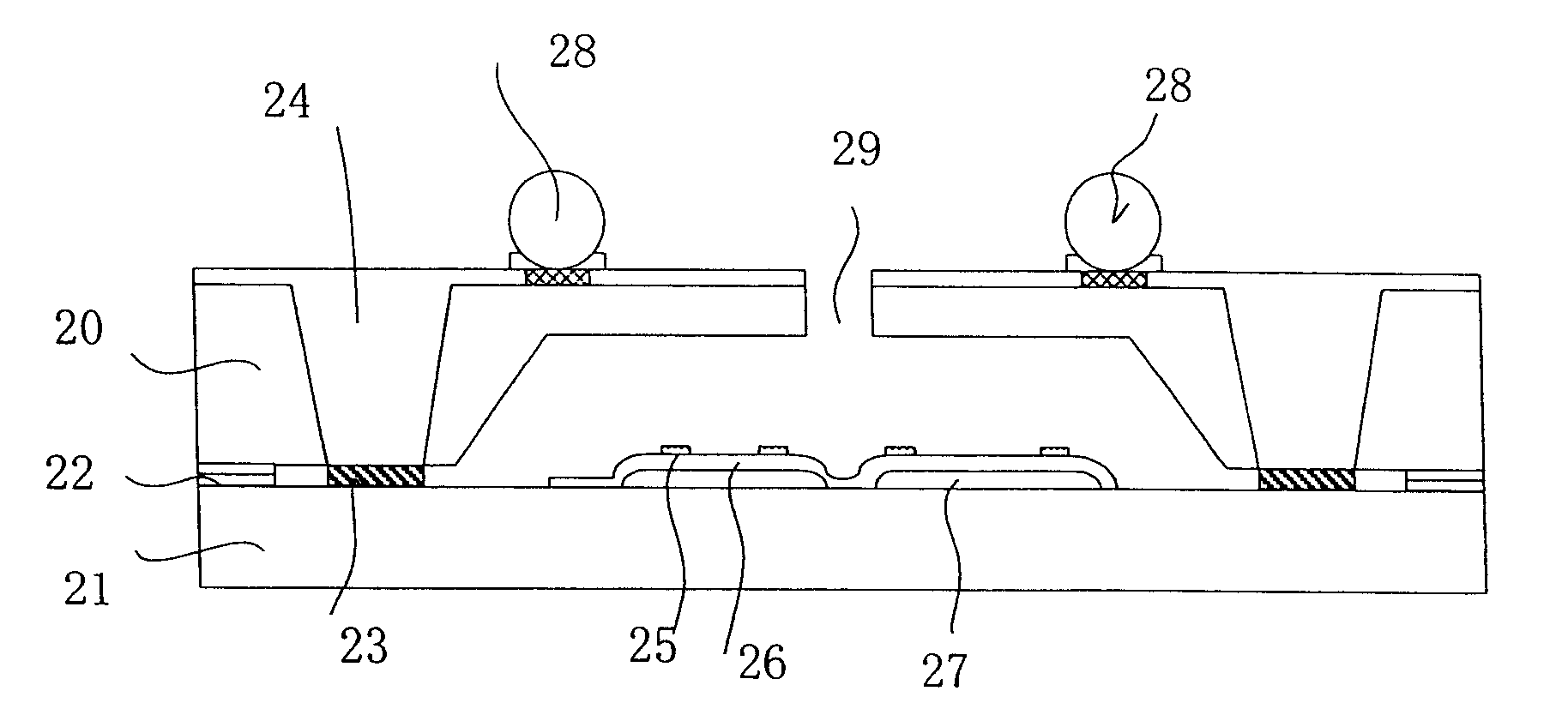 而根據(jù)對(duì)比文件1圖2(下圖I)可以看出,金屬層24直接裸露與整個(gè)芯片外部,其與焊接凸點(diǎn)28電連接,并不位于某種介質(zhì)之間;并且由于對(duì)比文件1中也沒有公開信號(hào)處理電路,因此,金屬層24也必然不位于信號(hào)處理電路的上方。因此,對(duì)比文件1中的金屬層24與本申請(qǐng)第二襯底的導(dǎo)體連線層的位置不同,其次,對(duì)比文件1中金屬層24的作用是用于將壓力傳感器的信號(hào)向MEMS的外部傳送,而不是用于將壓力傳感器的信號(hào)傳送至MEMS內(nèi)部某一襯底中的信號(hào)處理電路。所以,兩者的作用也不同,因此,對(duì)比文件1中的金屬層24不相當(dāng)于本申請(qǐng)權(quán)利要求1中導(dǎo)體連線層。