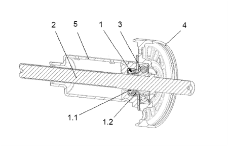 1-環(huán)狀彈簧元件;1.1-內(nèi)部的作用區(qū)域;1.2-外部的作用區(qū)域;2-軸;3-轂; 4-軸承架;5-殼體