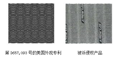 在初審判決中,地區(qū)法院認(rèn)可了哥倫比亞提出賽魯斯產(chǎn)品侵權(quán)的理由,隨后陪審團(tuán)判決賽魯斯賠償哥倫比亞超過300萬美元的賠償金。地區(qū)法院在簡易判決中駁回了賽魯斯的訴訟觀點,即第D657,093號的美國外觀專利與被訴產(chǎn)品圖案之間存在顯著差異。賽魯斯指出兩種圖案在波浪厚度、間距和方向均存在差異,以及其商標(biāo)在整個圖案中的顯著存在。關(guān)于賽魯斯的觀點,地區(qū)法院進(jìn)行了駁回,并提出在侵權(quán)分析中應(yīng)完全忽略商標(biāo)的存在。