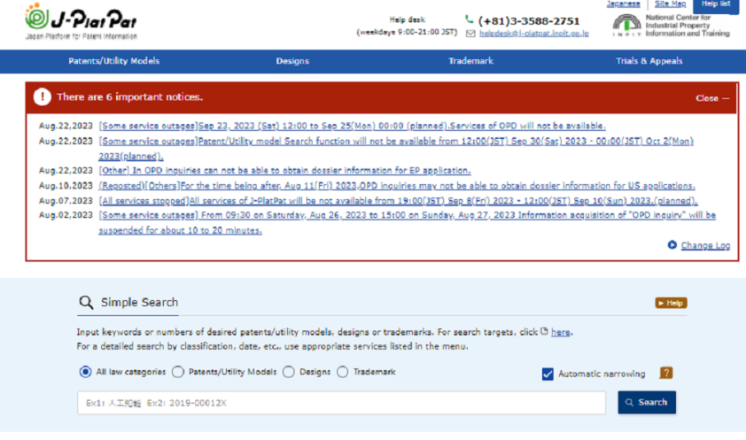 日本專利局將自1885年以來(lái)公布的所有日本專利、實(shí)用新型和外觀設(shè)計(jì)電子文獻(xiàn)及檢索系統(tǒng)通過(guò)其網(wǎng)站(http://www.jpo.go.jp/)上的工業(yè)產(chǎn)權(quán)數(shù)字圖書(shū)館(IPDL)免費(fèi)提供給全世界的公眾查詢,而2015年3月23日上線了日本專利平臺(tái)J-platpat,替代原IPDL系統(tǒng)。J-platpat收錄了1885年以來(lái)公布的日本專利、實(shí)用新型和外觀設(shè)計(jì)的信息,提供日文版和英文版兩種語(yǔ)言類型。
