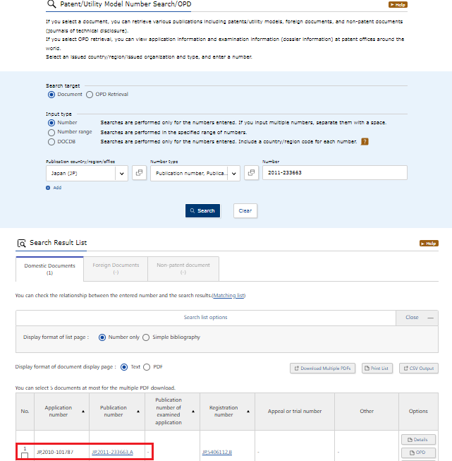 例如,在已知申請(qǐng)公開(kāi)號(hào)的情況下,通??梢酝ㄟ^(guò)Patent/Utility Model Number Search/OPD或Simple Search等方式進(jìn)行檢索。