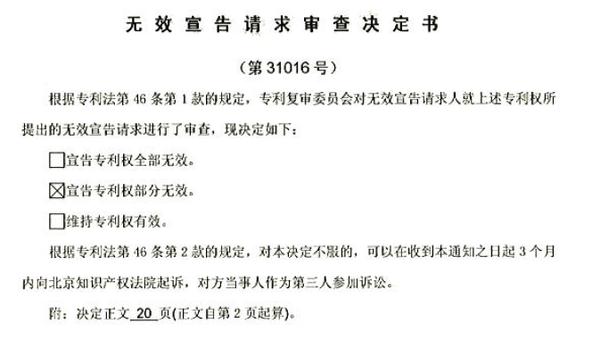 于是,最終作出了“宣告專(zhuān)利權(quán)部分無(wú)效”的審查決定。