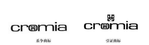 “cromia及圖” 商標(biāo)(下稱引證商標(biāo),如圖)由意大利拉瓦瑞茲恩佩利特瑞股份有限公司(下稱意大利拉瓦公司)于2004年1月5日創(chuàng)作完成,并于2004年3月率先于意大利公開(kāi)使用在箱包等產(chǎn)品上。