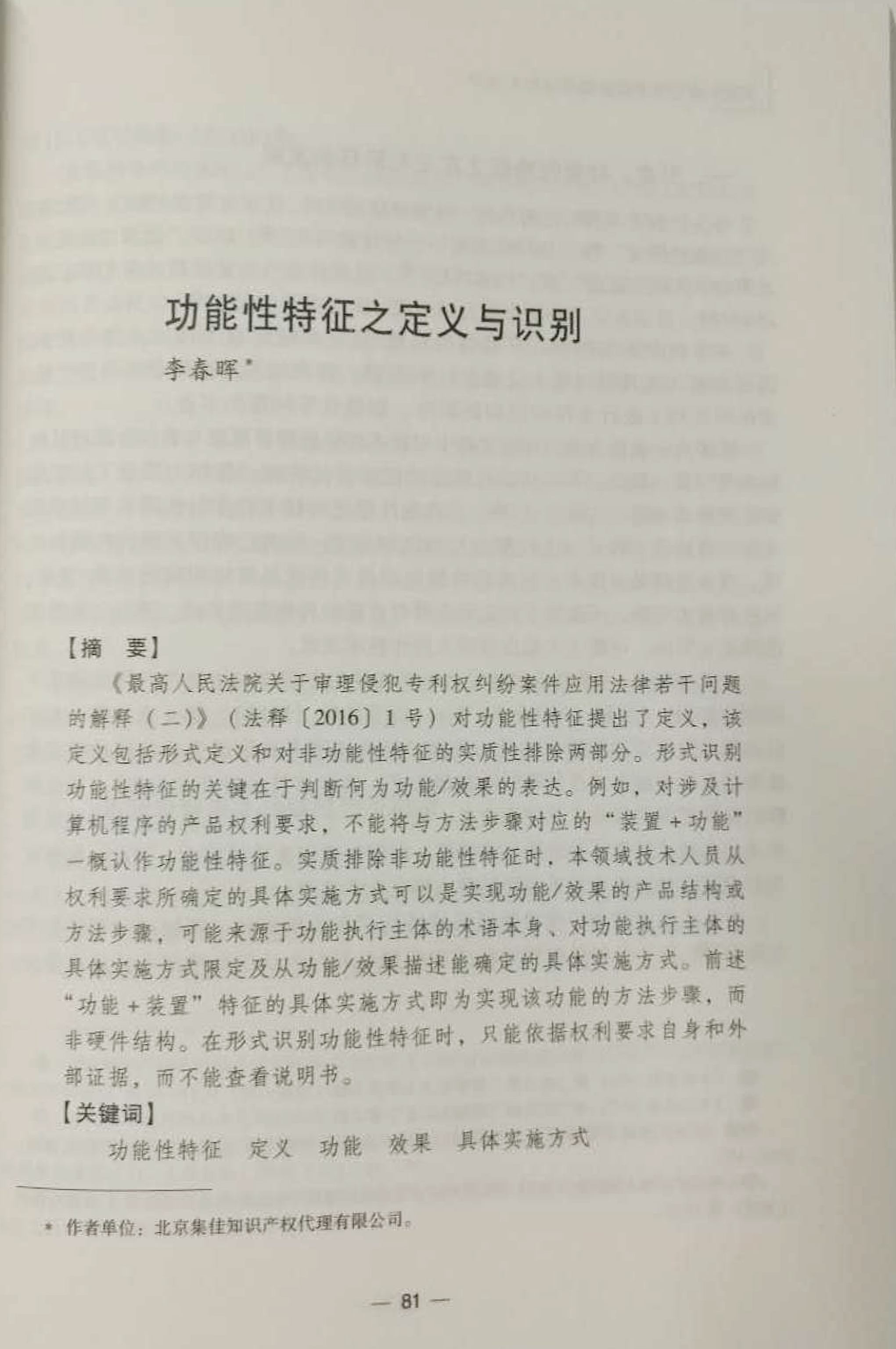 為了進(jìn)一步提升全國專利工作者對中國專利法及其實(shí)施細(xì)則的理解和適用水平,中華全國專利代理人協(xié)會(huì)舉辦了本次征文活動(dòng),就“專利授權(quán)和確權(quán)程序中文件的修改”、“功能性特征限定對權(quán)利要求保護(hù)范圍的影響”等主題,向廣大審查員、專利代理人以及社會(huì)各界知識(shí)產(chǎn)權(quán)工作者征集論文?;顒?dòng)吸引了國家知識(shí)產(chǎn)權(quán)局專利局、廣大專利代理機(jī)構(gòu)、法院、企業(yè)、以及大專院校知識(shí)產(chǎn)權(quán)工作者們的熱情參與,共收到稿件百余篇。經(jīng)過評(píng)審委員會(huì)的匿名評(píng)審,評(píng)選出20余篇優(yōu)秀論文,集佳合伙人李春暉以扎實(shí)的理論基礎(chǔ),結(jié)合多年來豐富的專利代理經(jīng)驗(yàn)撰寫的《功能性特征之定義與識(shí)別》入選優(yōu)秀。