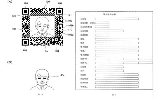 本文主要涉及二維碼技術,即特定圖案中的信息碼為筆者所關注的重點。其中,一組專利名稱均為“信息碼、信息碼生成方法、信息碼讀取裝置以及信息碼應用系統(tǒng)”的中國發(fā)明專利申請公開文本引起了筆者的注意。這組發(fā)明專利申請主要包括CN105009147A、CN105190650A、CN105074732A、CN105074733A、CN105074731A,以上五件專利申請的申請日均為2013年12月18日,且仍處于實質審查程序中。