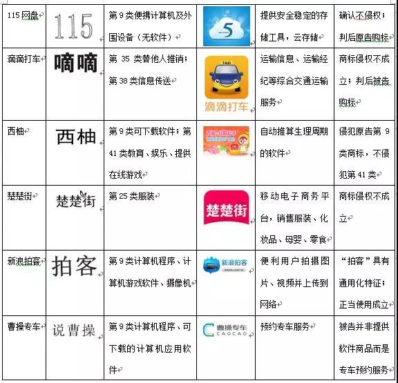 筆者認為,本文定義的第三種APP必然首先屬于第9類計算機程序(可下載軟件),不應(yīng)該存在例外,至于通過APP提供的后續(xù)服務(wù)屬于哪一類,再具體問題具體分析。2016年4月北京市高級人民法院《關(guān)于涉及網(wǎng)絡(luò)知識產(chǎn)權(quán)案件的審理指南》第28條在涉及應(yīng)用軟件的商品類似問題上的規(guī)定[13],謹慎有余,而可預(yù)期性不足,如果APP既不一定屬于互聯(lián)網(wǎng)服務(wù),也不一定是計算機軟件商品,那么這將給互聯(lián)網(wǎng)企業(yè)把握如何進行商標注冊、起訴維權(quán)、應(yīng)對被訴都帶來極大的困惑。在已決判例中,除“115網(wǎng)盤”、“曹操專車”兩案之外,絕大多數(shù)判決都認為APP屬于第9類計算機程序(可下載軟件)?!?15網(wǎng)盤”一案,存在涉案“115”商標核定使用商品雖屬0901群組但不包括“計算機程序(可下載軟件)”的情形,此外,法院考慮到“云存儲是計算機行業(yè)技術(shù)高速發(fā)展的新興成果,目前現(xiàn)有的商品、服務(wù)類別劃分中對這一新興事物尚未有較準確的定義,對于云存儲的性質(zhì)不應(yīng)簡單將其認定成與計算機軟件、硬件相同或類似,應(yīng)根據(jù)其特殊技術(shù)形態(tài)進行判斷”,認定“115同步網(wǎng)盤、115優(yōu)蛋、115瀏覽器是一一五公司115網(wǎng)盤云存儲服務(wù)的客戶端部分,僅僅是一一五公司互聯(lián)網(wǎng)服務(wù)的便捷通道口,在功能、用途方面明顯不同于類似群0901中的可下載軟件”,存在一定的合理性,但并不適合推而廣之;此案判決做出后,一一五公司受讓了涉案“115”商標,也表明其也清楚地認識到,提供互聯(lián)網(wǎng)相關(guān)服務(wù),難以繞開第9類計算機程序(可下載軟件)商品商標。“曹操專車”一審判決尚未生效,杭州知識產(chǎn)權(quán)法庭將會如何判斷APP的軟件商品屬性,我們拭目以待。