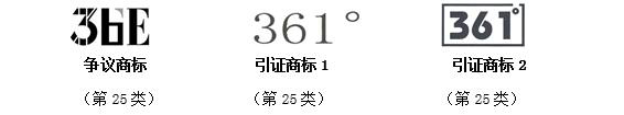 商評委裁定:引證商標(biāo)“361°”具有較強獨創(chuàng)性,且據(jù)申請人提交我委的證據(jù)可知, “361°”商標(biāo)在爭議商標(biāo)注冊申請日前在服裝、運動鞋商品上已具有較高的知名度,爭議商標(biāo)“36E”與“361°”的文字構(gòu)成、呼叫相近,含義無明顯區(qū)別,構(gòu)成近似商標(biāo)。同時,爭議商標(biāo)指定使用的服裝等商品與引證商標(biāo)核定使用的商品在功能用途、銷售渠道、消費對象等方面相同或相近,屬于同一種或類似商品。爭議商標(biāo)與引證商標(biāo)共存易導(dǎo)致公眾對商品的來源產(chǎn)生混淆、誤認,從而裁定爭議商標(biāo)予以無效宣告。