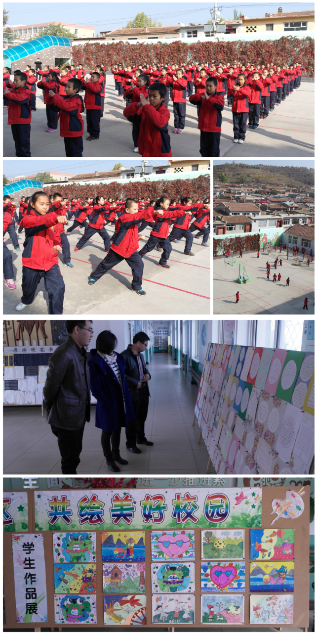 局領(lǐng)導(dǎo)和校領(lǐng)導(dǎo)同集佳代表們參觀了學(xué)校的多媒體教室、舞蹈教室以及圖書室等,隨后,大家一同觀看了高家營小學(xué)同學(xué)們整齊劃一的課間操。
