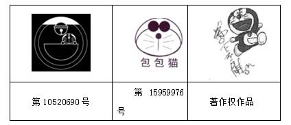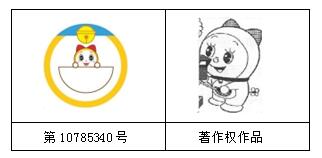 結(jié)合前文所引案例及案例一、二來(lái)看,這幾組案例的作品均為知名漫畫(huà)《哆啦A夢(mèng)》中的主要角色,哆啦A夢(mèng)及哆啦美。由于該作品在中國(guó)已經(jīng)連續(xù)播放并傳播了多年,其漫畫(huà)形象影響了80后、90后甚至是00后的多代人。對(duì)于中國(guó)大陸相關(guān)公眾而言,不僅認(rèn)識(shí)哆啦A夢(mèng)及哆啦美的全貌,而其對(duì)其具有代表意義的顏色、眼睛的位置、鈴鐺、口袋也十分熟悉,并將其與漫畫(huà)《哆啦A夢(mèng)》建立聯(lián)系。而在本文開(kāi)頭所引案例中的被異議商標(biāo),其選擇了哆啦美的耳朵、哆啦A夢(mèng)頭部的上半部分、哆啦A夢(mèng)的鈴鐺及其日語(yǔ)表現(xiàn)等多個(gè)具有突出特點(diǎn)的部分而組合;案例一中的第10520690號(hào)系爭(zhēng)商標(biāo)由鈴鐺、口袋、哆啦A夢(mèng)的頭部等具有突出特點(diǎn)的部分組成;第15959976號(hào)系爭(zhēng)商標(biāo)則以哆啦A夢(mèng)的頭部為圖形部分;案例二種的系爭(zhēng)商標(biāo)選用哆啦A夢(mèng)的藍(lán)色、口袋、鈴鐺以及哆啦美的黃色和頭部等具有突出特點(diǎn)的部分組成。這些商標(biāo)雖然整體與漫畫(huà)《哆啦A夢(mèng)》中哆啦A夢(mèng)及哆啦美的整體形成差異明顯,但是其均選用了這些作品中具有突出顯著性和明確指向性的部分,而相關(guān)公眾看到這些要素后,極易聯(lián)想到享有著作權(quán)的漫畫(huà)《哆啦A夢(mèng)》的相關(guān)形象。在這幾個(gè)案例中,不論是商標(biāo)局的決定書(shū)還是商評(píng)委的裁定書(shū)中均有類似的表述,即“系爭(zhēng)商標(biāo)與異議人引證的上述漫畫(huà)作品中的卡通形象在設(shè)計(jì)構(gòu)思、表現(xiàn)手法和視覺(jué)效果等方面相近,又構(gòu)成實(shí)質(zhì)性近似”。