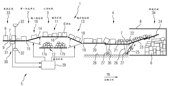 申請?zhí)枮?2014800100027,發(fā)明名稱為用于運(yùn)輸物品的設(shè)備和方法的專利申請描述了一種用于將物品沿運(yùn)輸方向從裝載區(qū)域運(yùn)輸至卸載區(qū)域的運(yùn)輸設(shè)備,其中權(quán)利要求1的內(nèi)容如下: