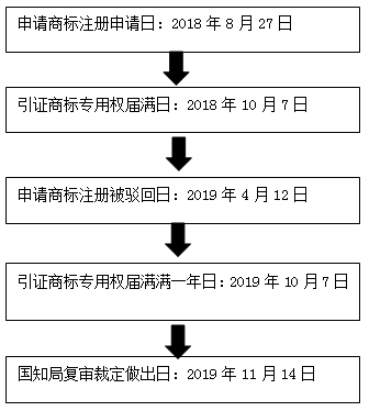 申請人于期限內(nèi)提交了商標(biāo)駁回復(fù)審申請。2019年11月14日,國知局經(jīng)審理認(rèn)定:第4592056號引證商標(biāo)已期滿未續(xù)展,已喪失專用權(quán),且之本案審理時止已滿一年,故不再構(gòu)成申請商標(biāo)初步審定的在先權(quán)利障礙。從而對申請商標(biāo)在復(fù)審商品上的注冊申請予以初步審定。