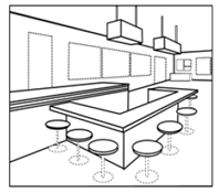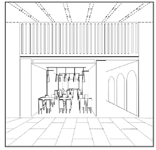 如需在一件商標申請中,同時遞交店面外觀和內飾裝潢的設計,可繪制在一張圖片里,如以下示例4(分開繪制則將認定為兩份申請)。