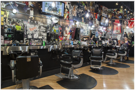 商標描述:該商標包括一家理發(fā)店的內部設計,包括金屬籠中的蒸氣鎖燈,帶裸露燈泡的吊燈,工具箱,帶有切入口和切出口的不銹鋼工作臺面,垂直的墻面招牌和展示架,音樂主題海報展示墻。虛線所示的特征不作為商標的一部分,僅用于顯示這些特征的位置。