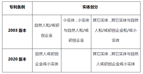 ?。?)新修訂條例取消了現行的自然人/初創(chuàng)企業(yè)、小實體和其它三種分類方式,不再將小實體進行單獨分類,取而代之的是將申請人的認定分為如下兩種: