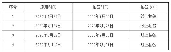 受新冠肺炎疫情影響,國家知識產(chǎn)權(quán)局商標局決定延期舉行商標注冊同日申請抽簽,并將抽簽方式由線下抽簽變更為線上抽簽,具體時間安排如下: